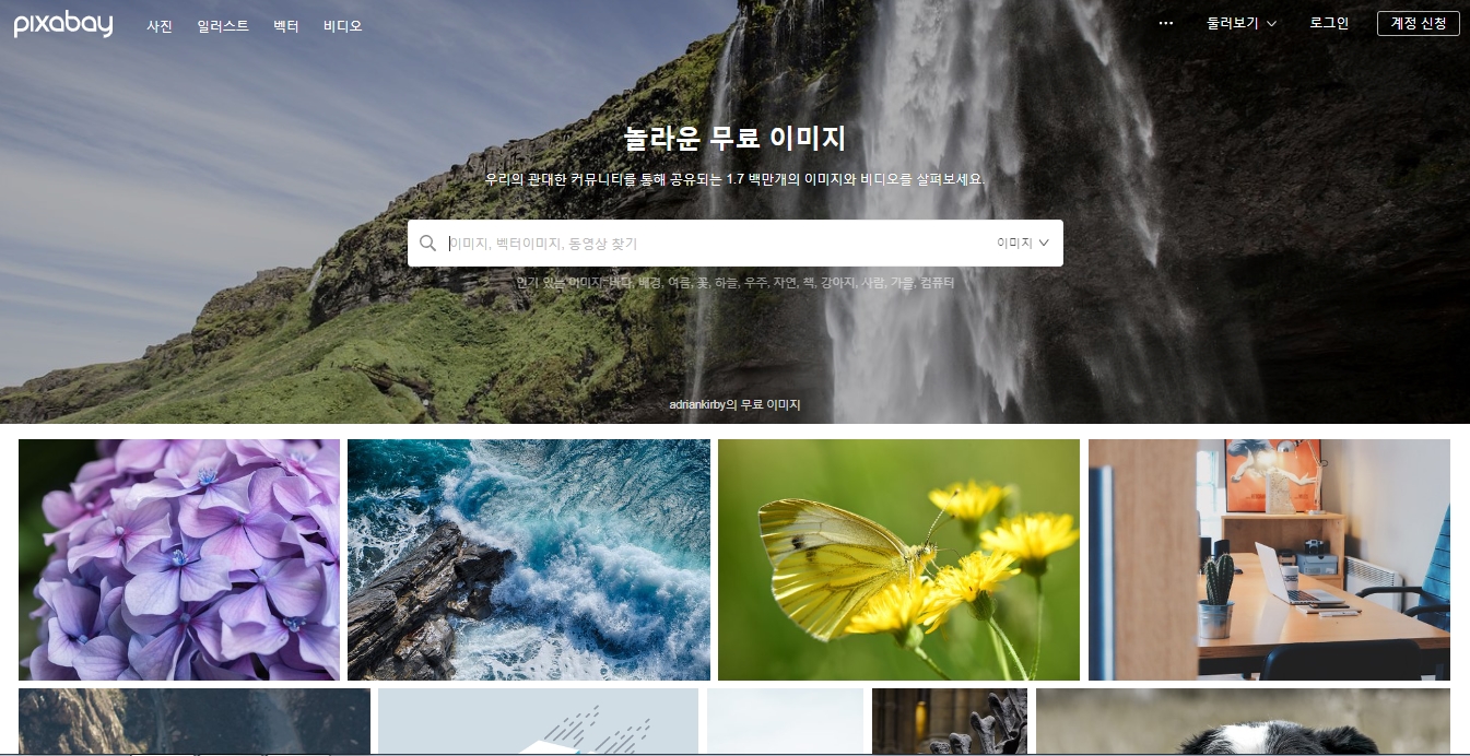250만장의 무료 이미지가 있는 곳입니다. 이 곳 또한 한글 검색이 가능합니다.